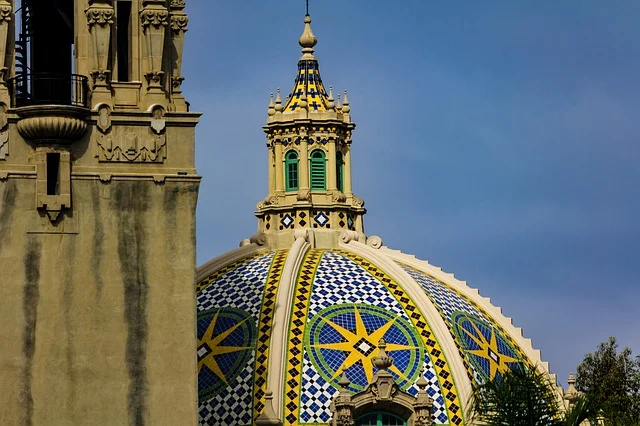 Al Balboa Park di San Diego, inoltre, è possibile osservare edifici dall’architettura coloniale spagnola, con porte e finestre arcuate, adornate di portici, fontane, cortili, solide mura e tetti dalle tegole rosse.