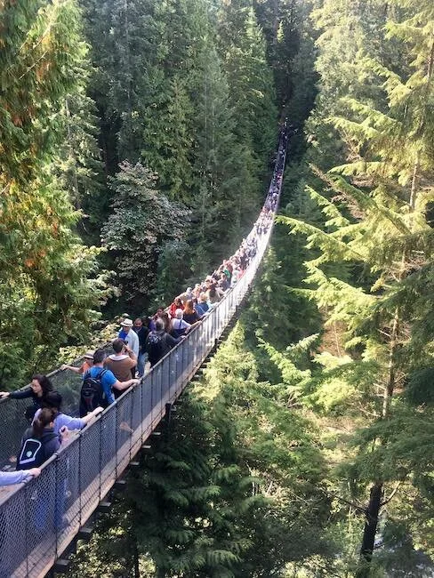 A due passi dal centro, infatti, c’è il Capilano Suspension Bridge Park, una foresta pluviale con alberi altissimi sui quali puoi camminare tramite una ben studiata rete di ponti sospesi, il più grande dei quali è appunto quello di Capilano, lungo 170 metri e paurosamente dondolante. Uno solo di quegli alberi dà aria ad una famiglia di 4 persone per tutta la vita (umana), grazie all’ossigeno che emette tramite fotosintesi. E nel frattempo aiuta a ripulire l’aria dall’anidride carbonica che emettiamo, ad esempio, usando l’auto. Come non amare gli alberi?