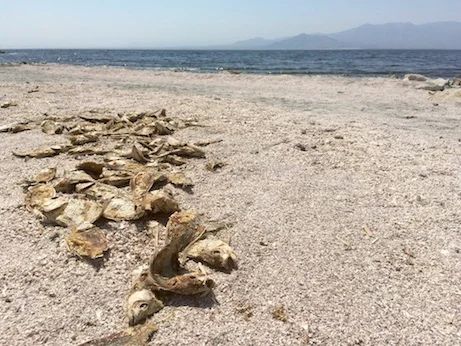 Ai giorni nostri, visitare il Salton Sea d’estate è un’esperienza quasi terrificante. Camminando lungo la spiaggia di Bombay Beach, per esempio, si incappa in una moria di pesci lasciati lì a marcire al sole. Le loro carcasse causano un nauseabondo fetore di carogne in putrefazione che si sparge nell’aria. I pesci muoiono a migliaia per via del fosforo e del nitrogeno che defluiscono dai terreni agricoli. I minerali, infatti, causano la fioritura di alghe che, quando muoiono, privano l’acqua e i pesci di ossigeno. Anche se l’agricoltura dovesse fermarsi all’istante, ci sarebbe ancora da smaltire una gran quantità di minerali nel sottosuolo, accumulata nel corse degli anni addietro.