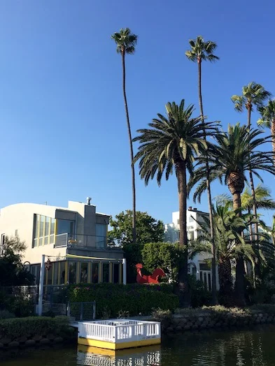 Venice venne istituita nel 1905 da Abbot Kinney, eccentrico imprenditore edile statunitense, come un parco divertimenti chiamato “la Venezia dell’America”, con tanto di ruota panoramica, canali d’acqua e gondolieri italiani. La maggior parte dei canali è ora stata sostituita da strade d’asfalto ma rimangono alcuni navigli restaurati sui quali si affacciano ville addobbate con bizzarre sculture, piante e fiori. Venice Canal Walk è il nome di questo quartiere idilliaco, a cui si può accedere sia da Venice Boulevard sia da Washington Boulevard.