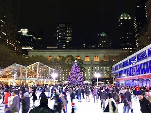 Visita alla New York Public Library, la principale biblioteca della Grande Mela, e al tranquillo Bryant Park durante il periodo delle festività natalizie!